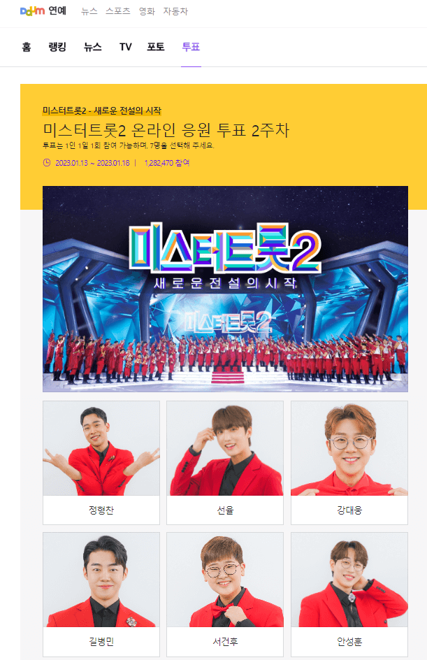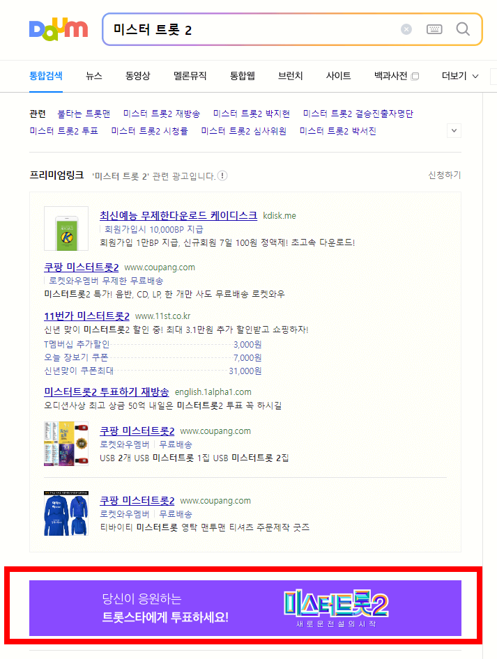 2. 다음 애플리케이션이나 컴퓨터를 이용한 미스터트롯2 투표하기 바로가기 방법