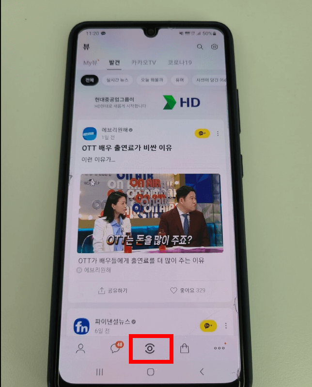 - 접속 후 화면 아래에 있는 눈 모양(카카오뷰) 클릭