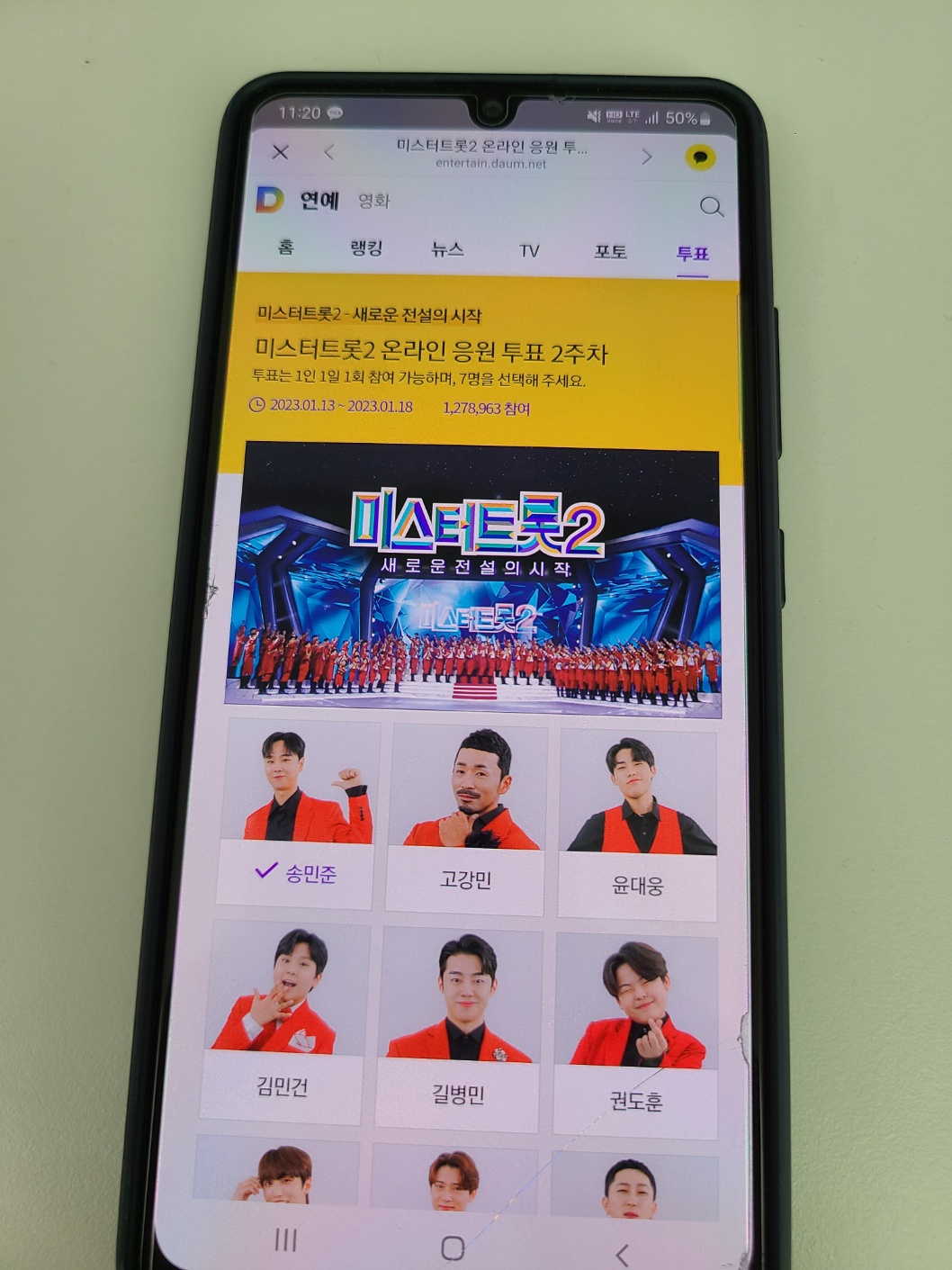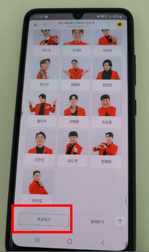 - 클릭하면 투표할 수 있는 가수들이 나오고 7명을 선택해 주세요