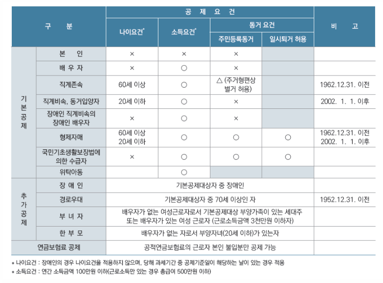 * 부양가족 기준은 아래 사진과 같습니다.